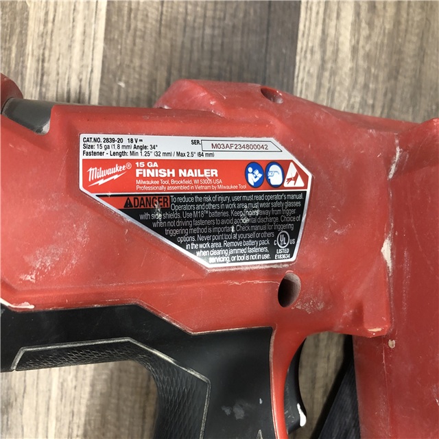 AS-IS Milwaukee FUEL 18-Volt Lithium-Ion Brushless Cordless Gen II 15-Gauge Angled Finish Nailer (Tool-Only)
