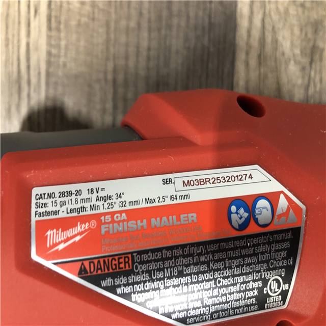 AS-IS Milwaukee FUEL 18-Volt Lithium-Ion Brushless Cordless Gen II 15-Gauge Angled Finish Nailer (Tool-Only)