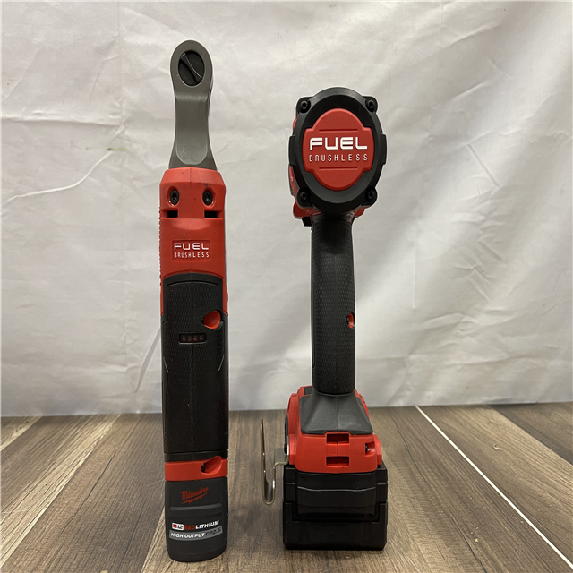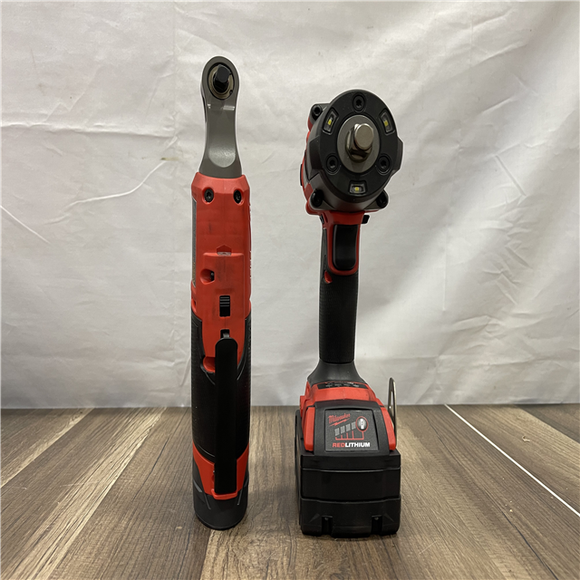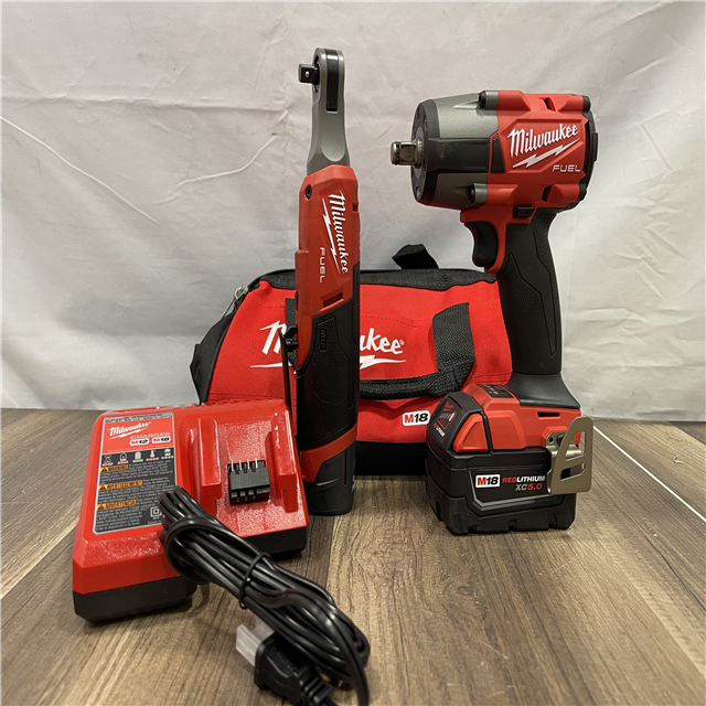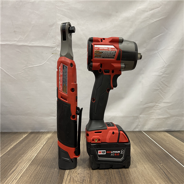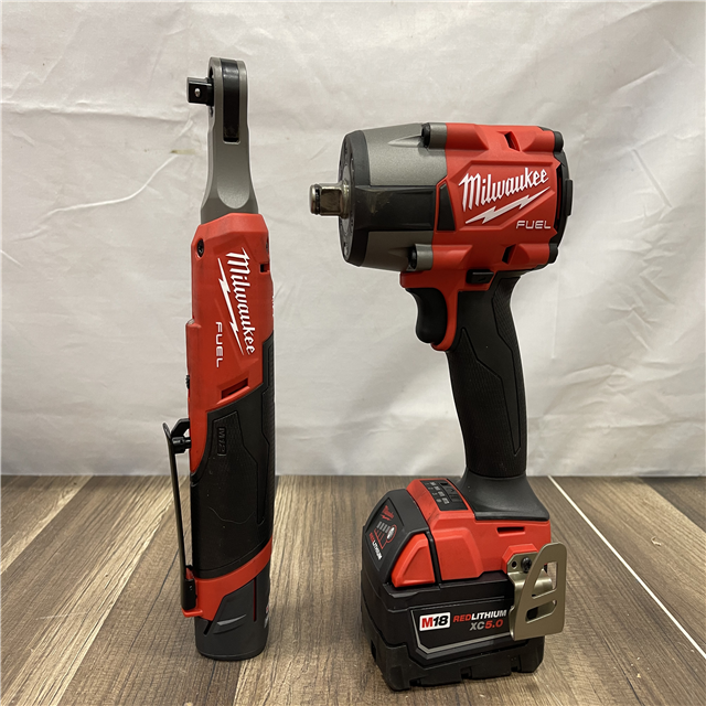 AS-IS Milwaukee FUEL 18V Cordless Mid Torque 1/2 in. Impact Wrench w/ M12 FUEL 3/8 in. Ratchet & Battery/Charger Combo Kit