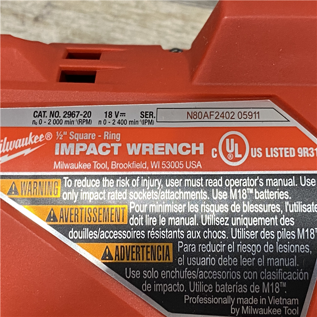 AS-IS Milwaukee FUEL 18V Lithium-Ion Brushless Cordless 1/2 in. Impact Wrench w/Friction Ring Kit