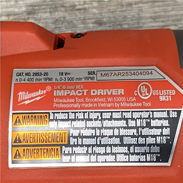 AS-IS Milwaukee FUEL 18V Lithium-Ion Brushless Cordless 1/4 in. Hex Impact Driver Kit