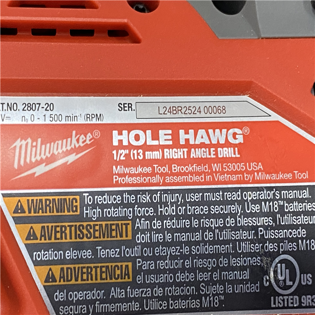 AS-IS Milwaukee FUEL GEN II 18V Lithium-Ion Brushless Cordless 1/2 in. Hole Hawg Right Angle Drill (Tool-Only)