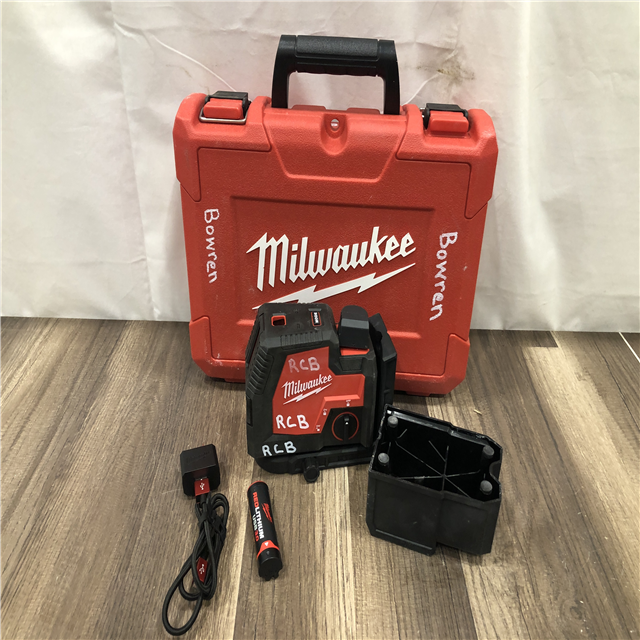 AS-IS Milwaukee Green 100 ft. Cross Line and Plumb Points Rechargeable Laser Level Kit