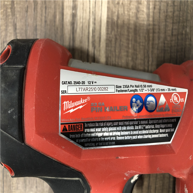 AS-IS Milwaukee M12 12-Volt 23-Gauge Lithium-Ion Cordless Pin Nailer (Tool-Only)