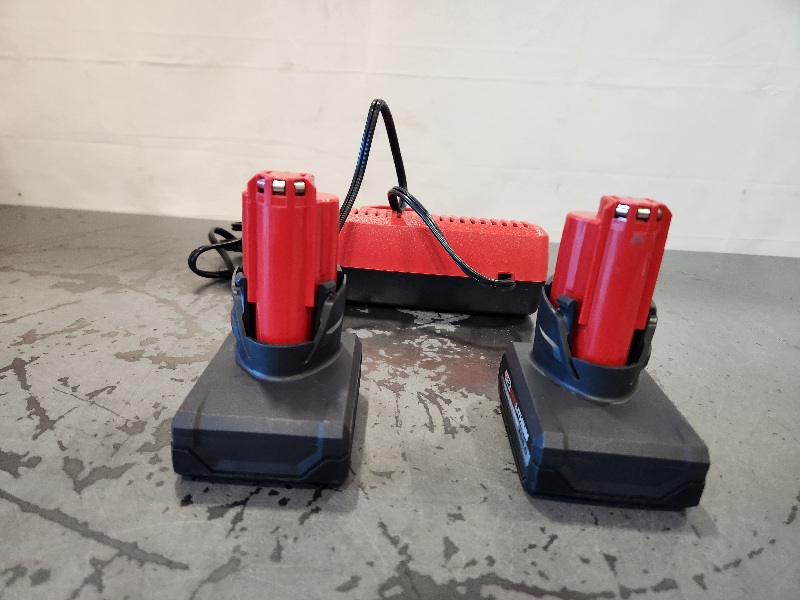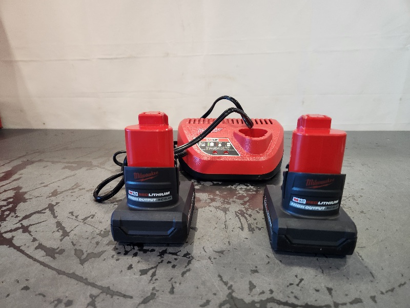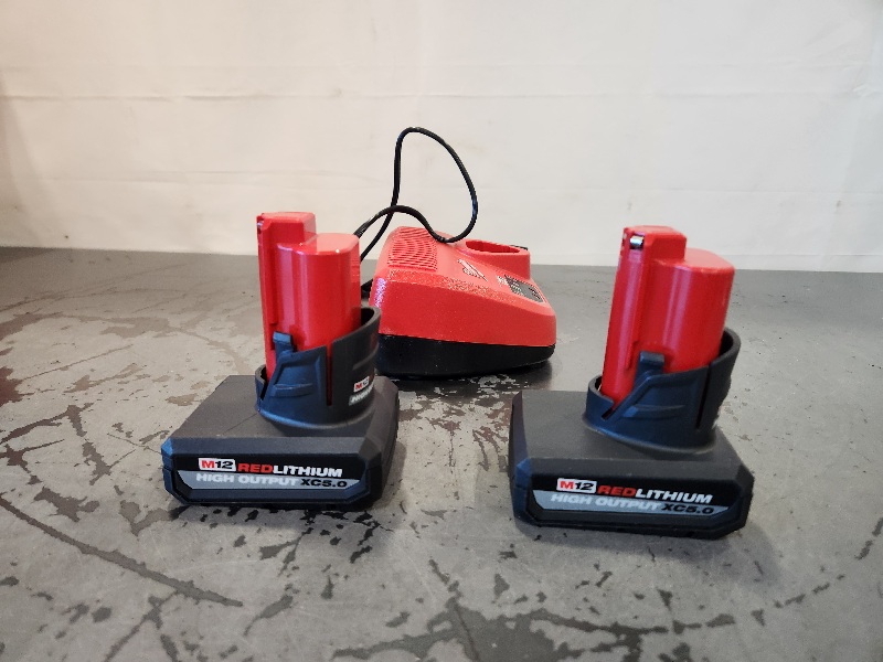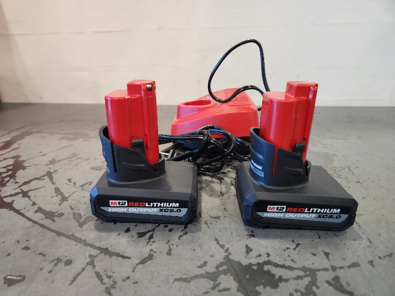 AS-IS- Milwaukee M12 12V Lithium-Ion XC High Output 5.0 Ah Battery Pack (2-Pack) Starter Kit with Charger