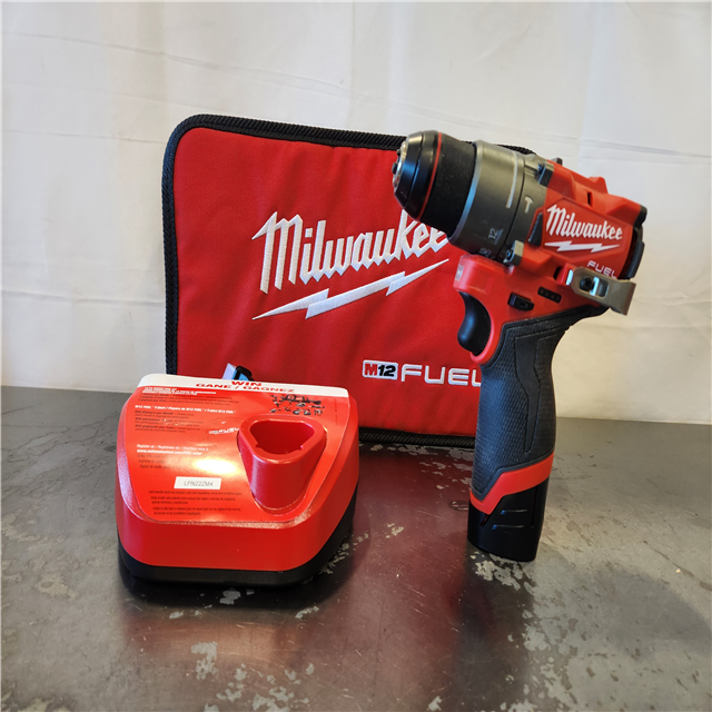 AS-IS- Milwaukee M12 FUEL 12-Volt Lithium-Ion Brushless Cordless 1/2 in. Hammer Drill Kit with 1 Compact 2.0Ah Battery Pack and 1 Charger