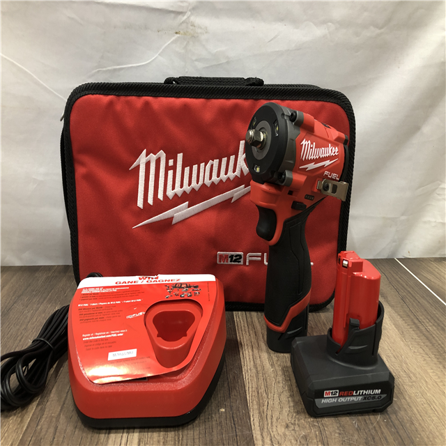 AS-IS Milwaukee M12 FUEL 12V Li-Ion Brushless Cordless Stubby 3/8 in. Impact Wrench Kit