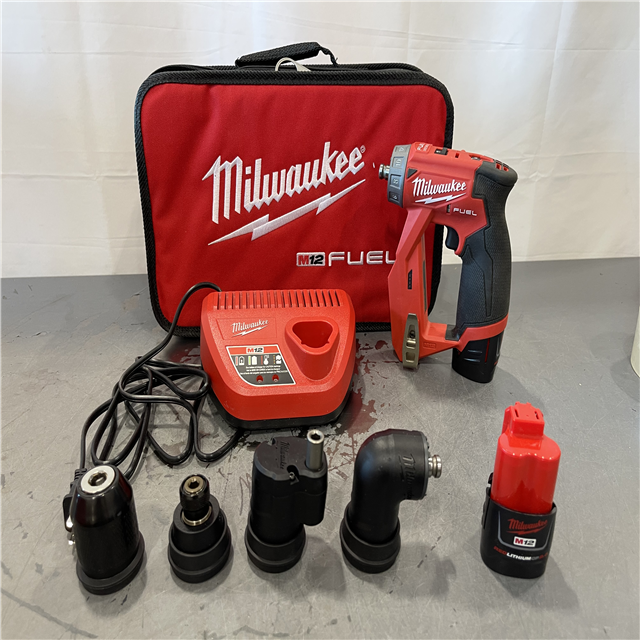 AS-IS - Milwaukee M12 FUEL 12V Lithium-Ion Brushless Cordless 4-in-1 Installation 3/8 in. Drill Driver Kit