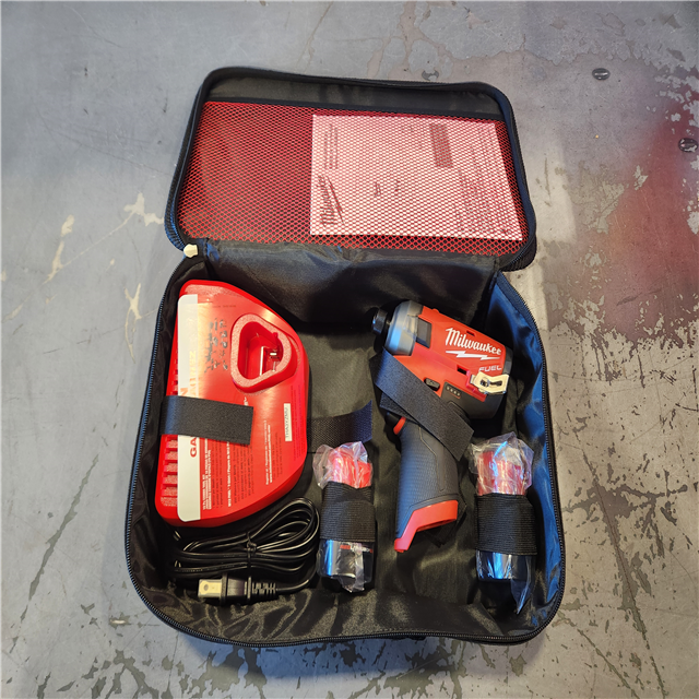 AS-IS - Milwaukee M12 FUEL SURGE 12V Lithium-Ion Brushless Cordless 1/4 in. Hex Impact Driver Compact Kit W/Two 2.0Ah Batteries, Bag