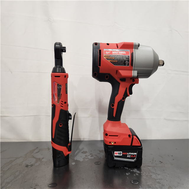 AS-IS- Milwaukee M12/M18 12/18V Lithium-Ion Cordless 3/8 in. Ratchet and 1/2 in.Combo Kit