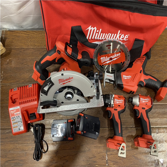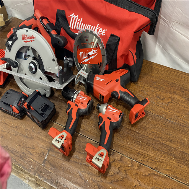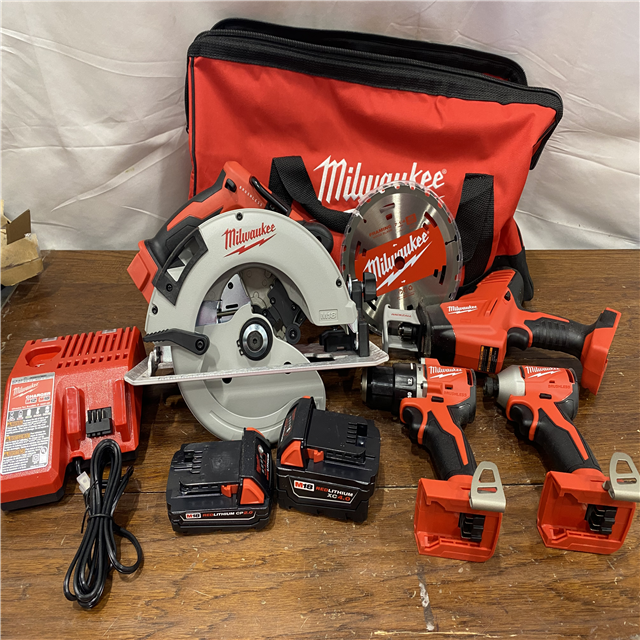 AS-IS Milwaukee M18 18-Volt Lithium-Ion Brushless Cordless Combo Kit (4-Tool) with 2-Batteries, 1-Charger and Tool Bag