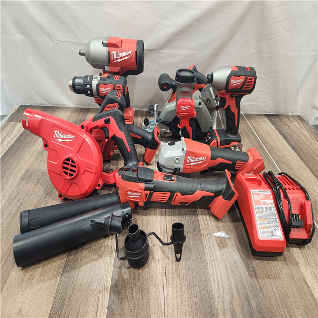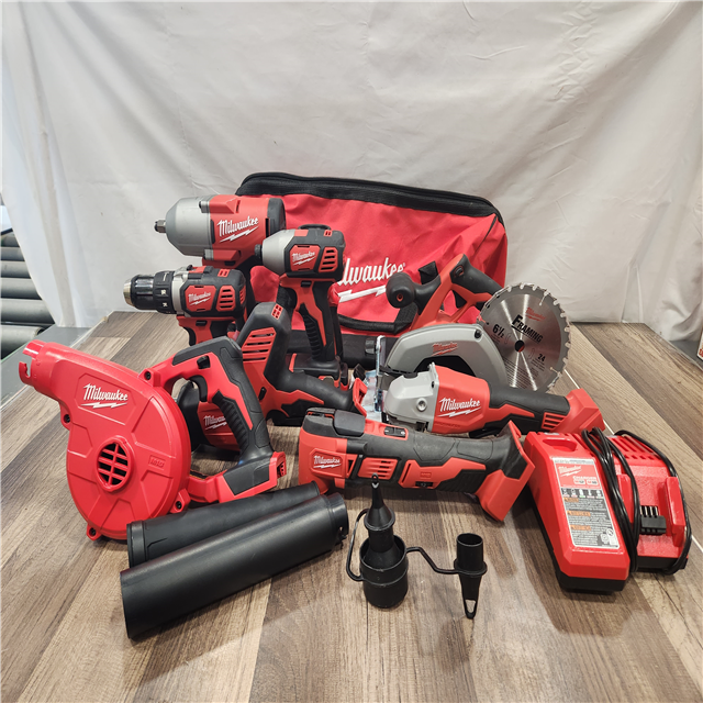 AS-IS- Milwaukee M18 18-Volt Lithium-Ion Cordless 9-Tool Combo Kit with 2-Batteries Charger and Tool Bag