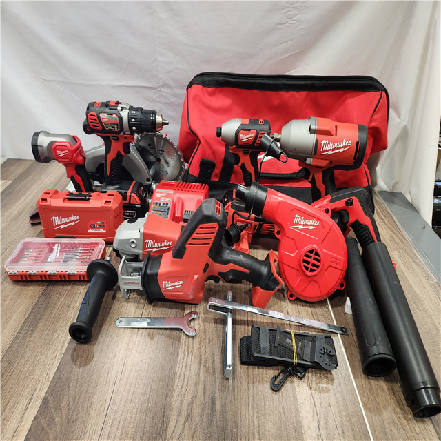 AS-IS- Milwaukee M18 18-Volt Lithium-Ion Cordless 9-Tool Combo Kit with 2-Batteries Charger and Tool Bag