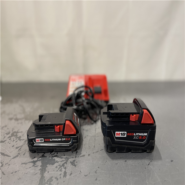 AS-IS- Milwaukee M18 18-Volt Lithium-Ion Starter Kit with One 5.0 Ah and One 2.0 Ah Battery and Charger