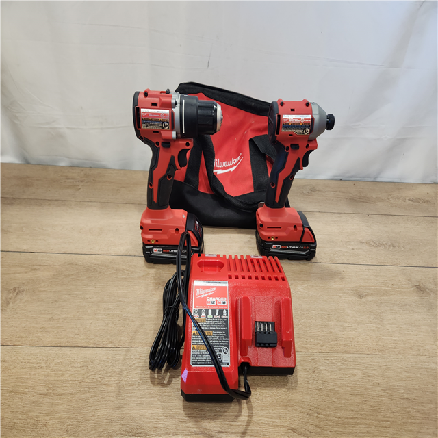 AS-IS- Milwaukee M18 18V Lithium-Ion Brushless Cordless Compact Drill/Impact Combo Kit (2-Tool) W/(2) 2.0 Ah Batteries Charger & Bag