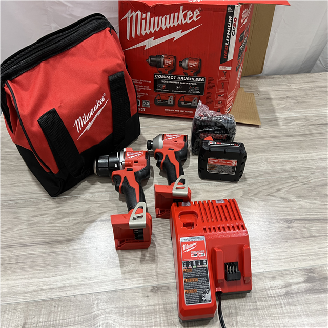 AS-IS Milwaukee M18 18V Lithium-Ion Brushless Cordless Compact Drill/Impact Combo Kit