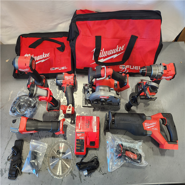 AS-IS- Milwaukee M18 FUEL 18V Lithium-Ion Brushless Cordless Combo Kit with Two 5.0 Ah Batteries 1 Charger 2 Tool Bags (7-Tool)