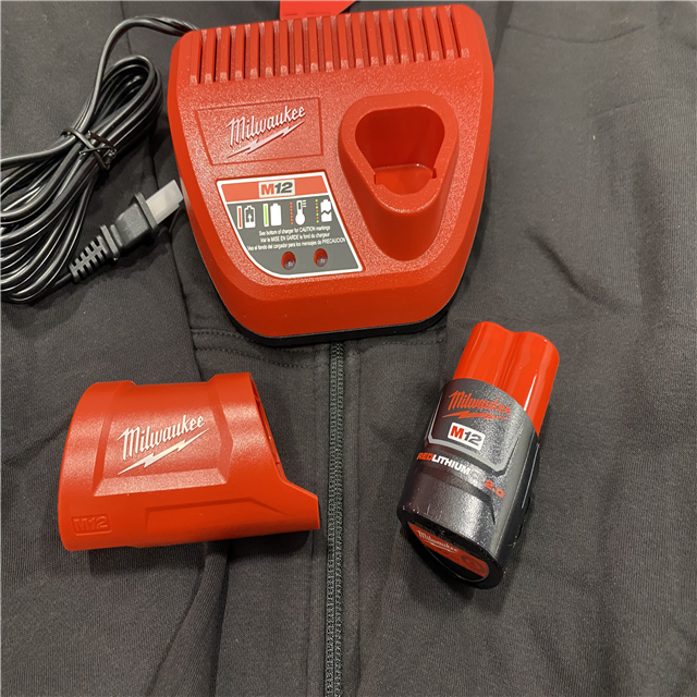 AS-IS Milwaukee Men's 2X-Large 12-Volt Lithium-Ion Cordless Black Heated Jacket Hoodie Kit