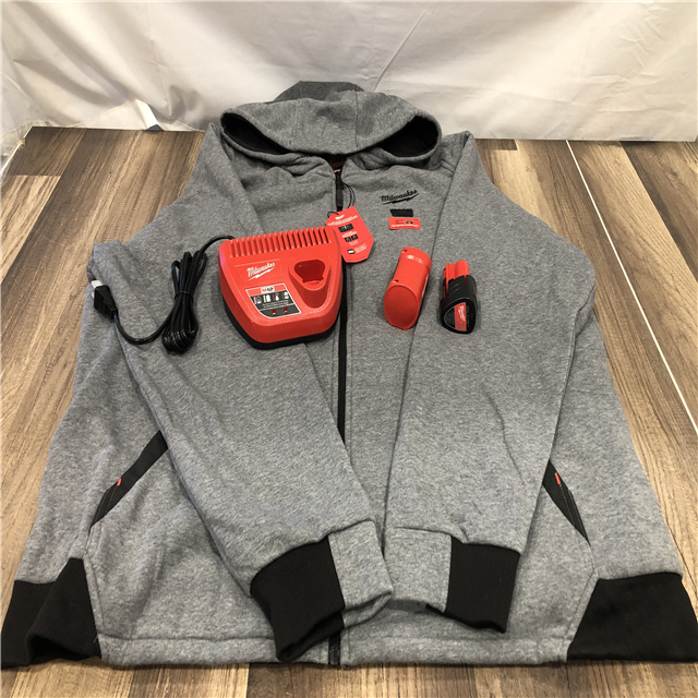 AS-IS Milwaukee Men's 2X-Large 12-Volt Lithium-Ion Cordless Gray Heated Jacket Hoodie Kit
