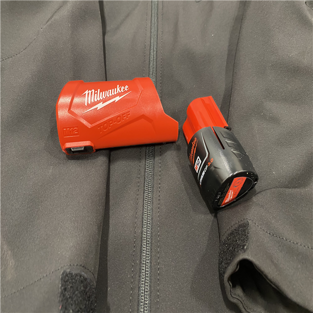 AS-IS Milwaukee Men's 2X-Large 12-Volt Lithium-Ion Cordless Tough Shell Black Heated Jacket Kit