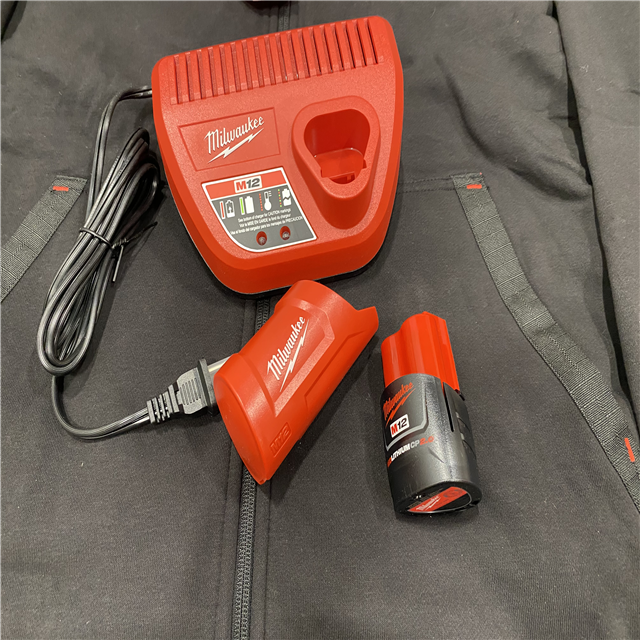 AS-IS Milwaukee Men's Large 12-Volt Lithium-Ion Cordless Black Heated Jacket Hoodie Kit