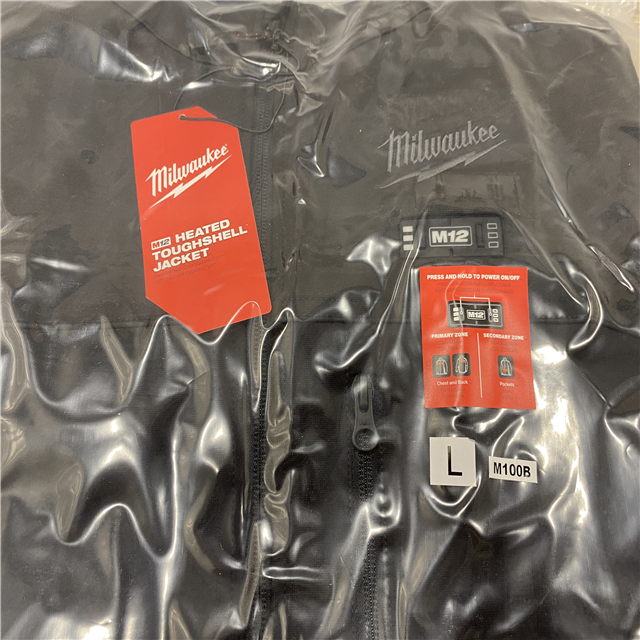 AS-IS Milwaukee Men's Large 12-Volt Lithium-Ion Cordless Tough Shell Black Heated Jacket Kit