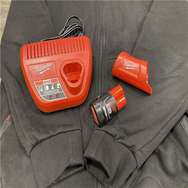 AS-IS Milwaukee Men's Medium 12-Volt Lithium-Ion Cordless Black Heated Jacket Hoodie Kit