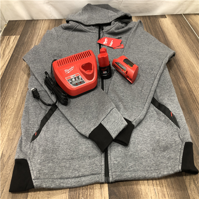 AS-IS Milwaukee Men's Medium 12-Volt Lithium Ion Cordless Gray Heated Hooded Jacket Kit