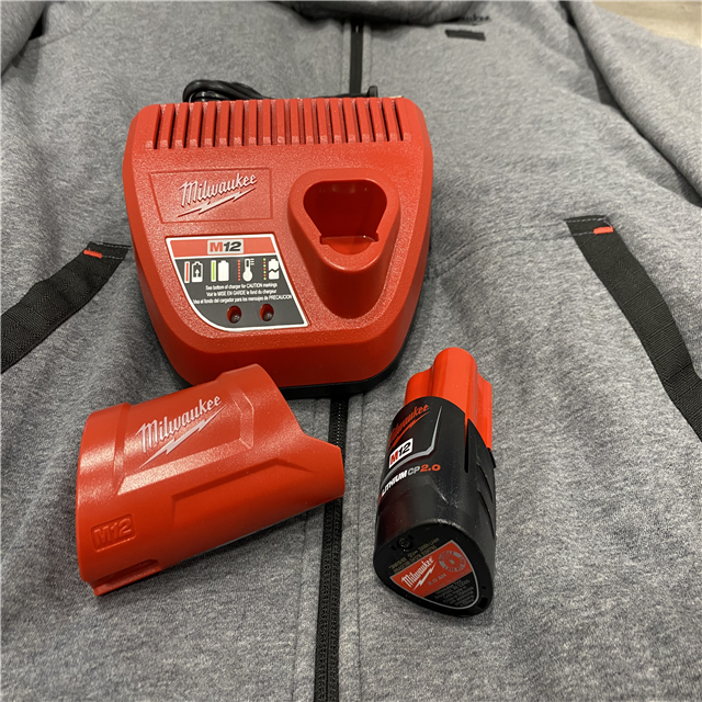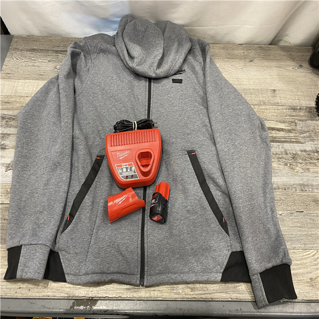 AS-IS Milwaukee Men's X-Large 12-Volt Lithium-Ion Cordless Gray Heated Jacket Hoodie Kit