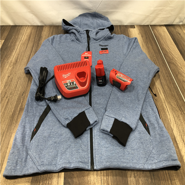 AS-IS Milwaukee Women's Large 12-Volt Lithium Ion Cordless Blue Heated Hooded Jacket Kit