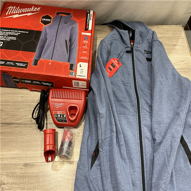 AS-IS Milwaukee Women's Large 12-Volt Lithium Ion Cordless Blue Heated Hooded Jacket Kit