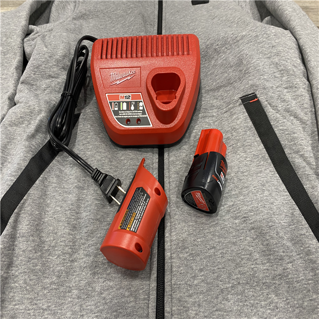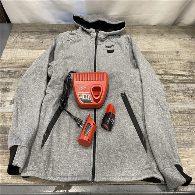 AS-IS Milwaukee Women's Large 12-Volt Lithium-Ion Cordless Gray Heated Jacket Hoodie Kit
