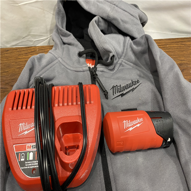 AS-IS Milwaukee Women's Medium M12 12-Volt Lithium-Ion Cordless Gray Heated Jacket Hoodie Kit