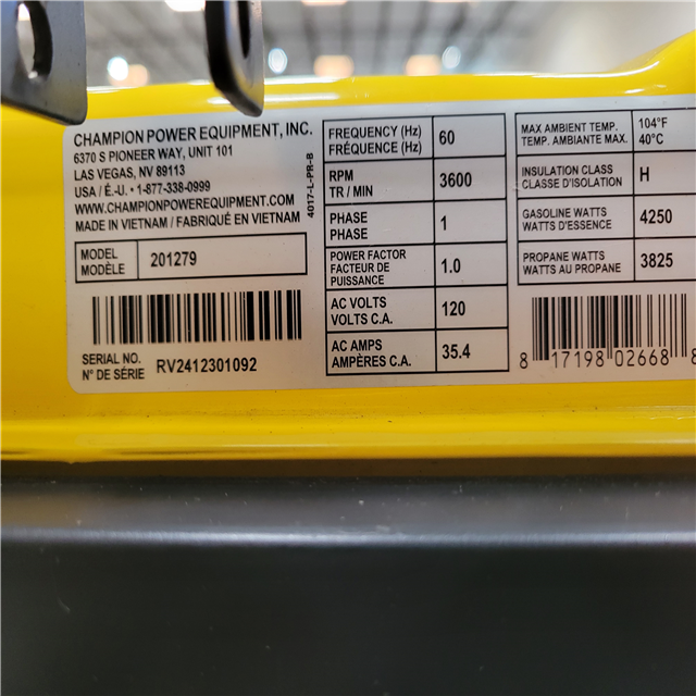 CALIFORNIA AS-IS CHAMPION 5300 PORTABLE GENERATOR