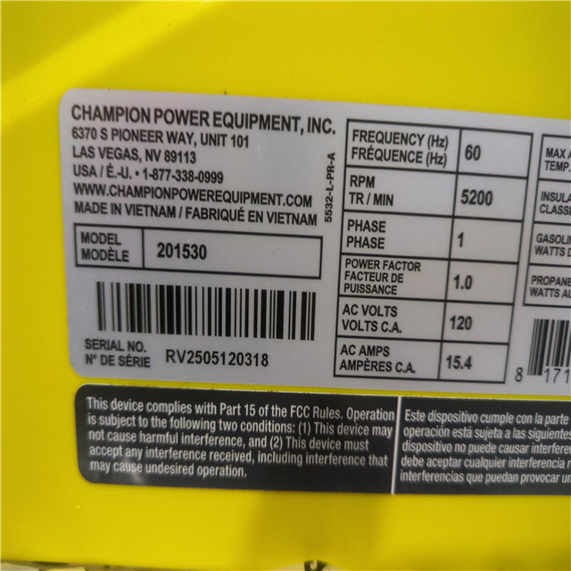CALIFORNIA AS-IS CHAMPION PORTABLE POWER GENERATOR
