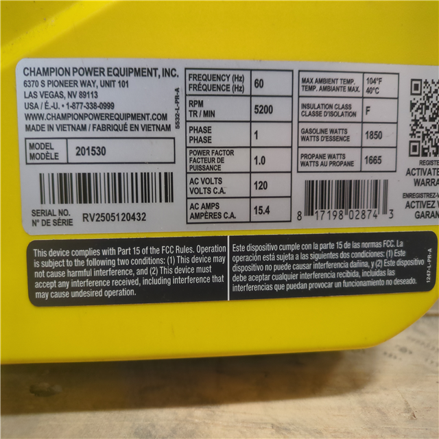 CALIFORNIA AS-IS CHAMPION PORTABLE POWER GENERATOR