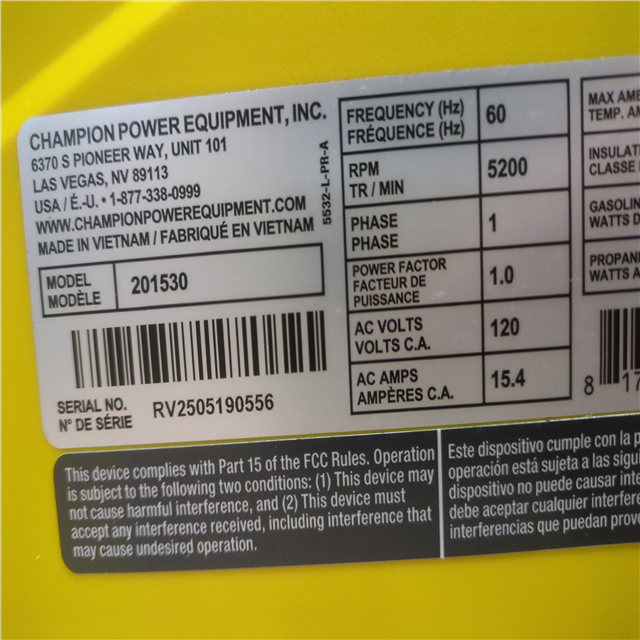CALIFORNIA AS-IS CHAMPION PORTABLE POWER GENERATOR