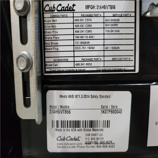 CALIFORNIA AS-IS CUB CADET SNOW REMOVER
