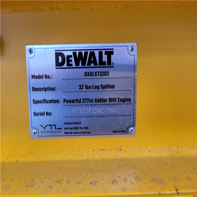 CALIFORNIA AS-IS DEWALT 32 TON LOG SPLITTER