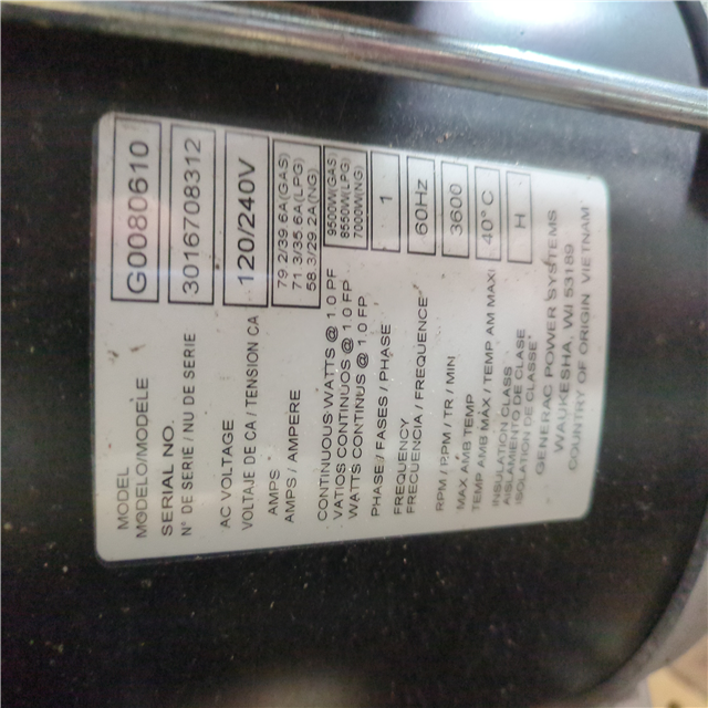 CALIFORNIA AS-IS GENERAC GENERATOR