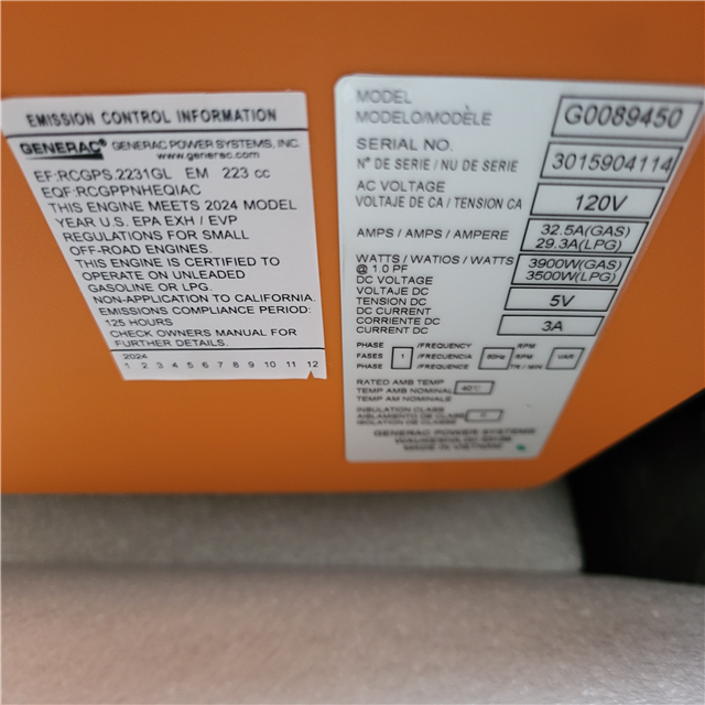 CALIFORNIA AS-IS GENERAC PORTABLE GENERATOR