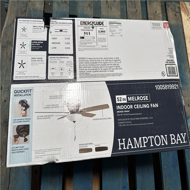 California AS-IS Hampton Bay 52 in. Melrose Indoor Ceiling Fan