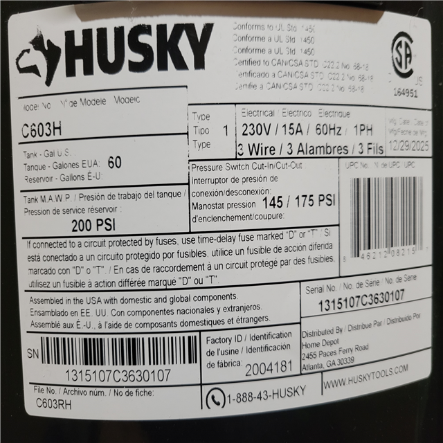 CALIFORNIA AS-IS HUSKY AIR COMPRESSOR