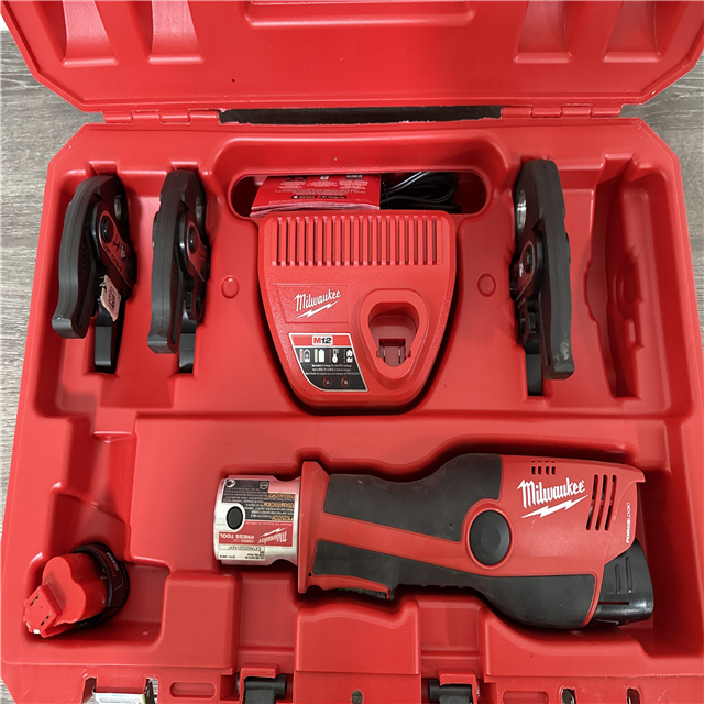 California AS-IS Milwakee M12 Force Logic Press Tool Kit Includes (2) Batteries Charger & Hard Case