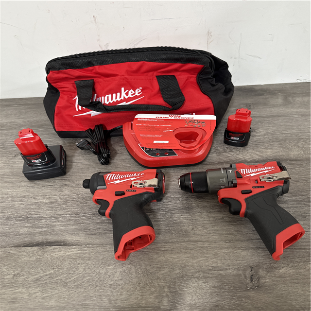 CALIFORNIA AS-IS Milwaukee 2-Tool Combo Kit Includes (2) Batteries Charger & Bag; Appears in Excellent Conditin