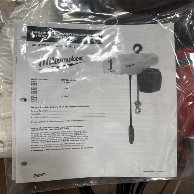 California AS-IS Milwaukee Electric Chain Hoist