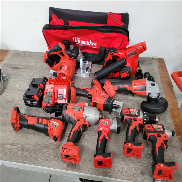 California AS-IS Milwaukee M18 9-Tool Combo Kit Includes (2) Batteries Charger & Bag