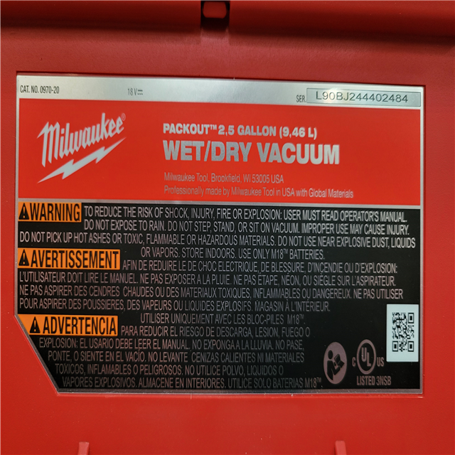 California AS-IS Milwaukee Wet/Dry Vacuum (Tool Only)