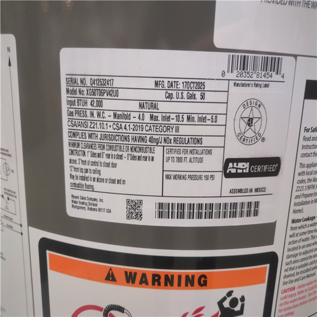 California AS-IS Rheem Water Heater