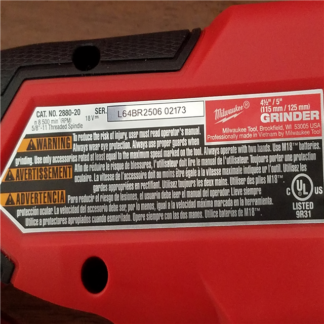 California NEW Milwaukee 4-1/2/5 Braking Grinder Paddle Switch No-Lock (Tool Only)